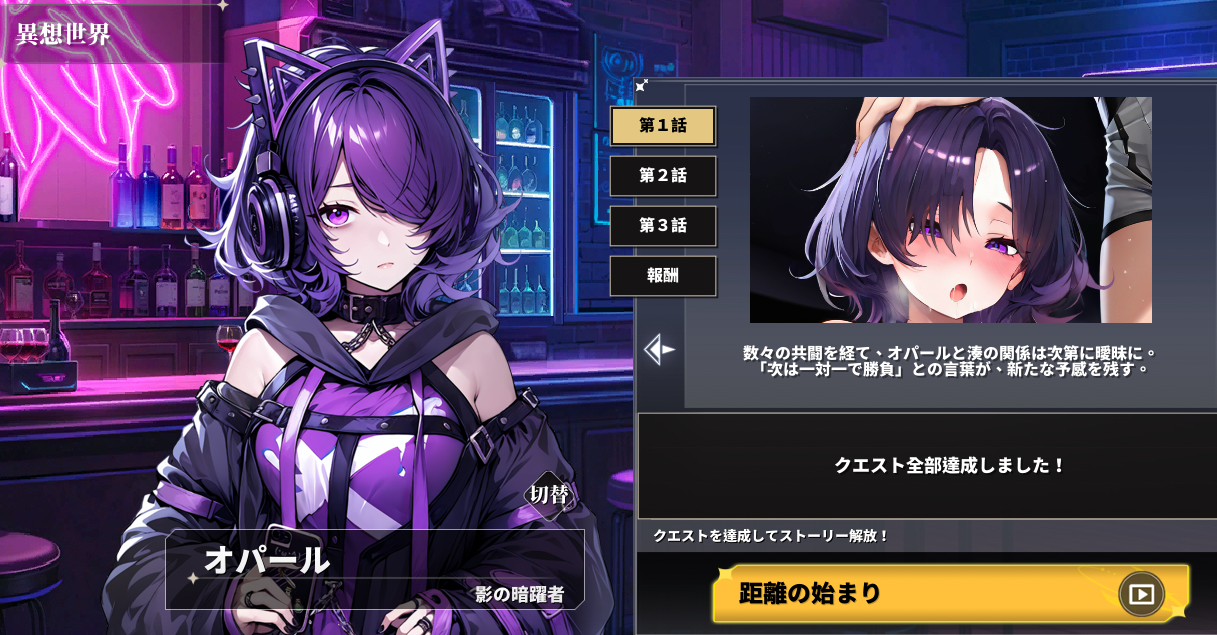 今回のアップデートにて、第3章 第7節 までのストーリーが解放されました。